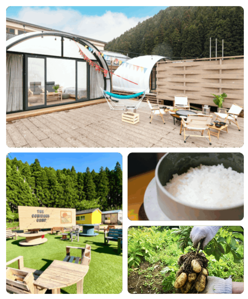 米の等級検査の資格を持っているお米やさん(但馬米穀)が自信を持って「こだわりのお米」を提供します。炊き方食べ方のコツを教わりながら、かまどを使った炊き立てご飯を食べることができる体験も随時開催中。地元中心のBBQ食材だけではなく、ご飯までこだわった食べることの楽しみを感じられる、作り手との距離が近いキャンプ場です。